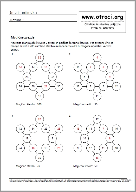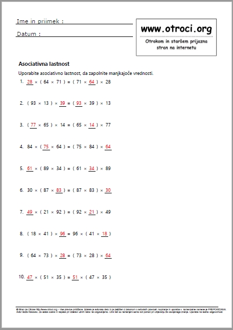 POZOR ! Učne liste so izdelali sodelavci strani za otroke. Namenjeni so samo kot pomoč pri utrjevanju že osvojenega znanja in ne nadomeščajo klasičnega učenja v osnovni šoli. Za eventuelne slabe ocene in eventuelne napake pri izdelavi učnih listov ne odgovarjamo. Uporaba učnih listov je na lastno odgovornost. Ves material, je v lasti strani za otroke www.otroci.org. Avtorstvo tega materiala je zašciteno z zakonom o avtorskih pravicah. Uporaba ucnih listov je dovoljena samo za osebno rabo. Vsako kopiranje in uporaba v komercijalne namene brez predhodnega dogovora je prepovedana. P O M E M B N O ! Copyright © ARcom,Alojz Rakovec s.p. Vse pravice so pridržane. Za dodatne informacije smo vam na voljo na :