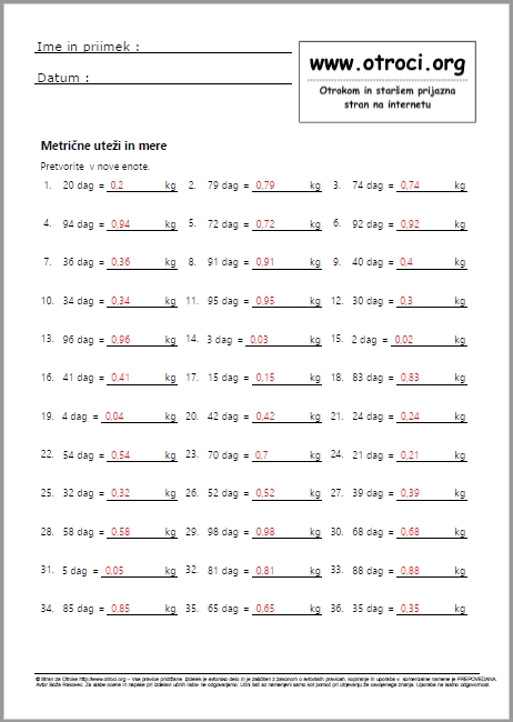 Skupaj 210 učnih listov z rešitvami ! Centimetri v decimetre , centimetri v metre , centimetri v milimetre , milimetri v centimetre ,