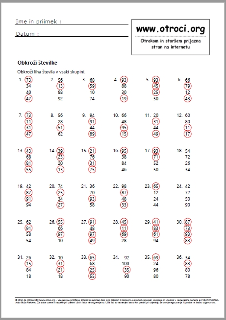 OBKROŽI ŠTEVILKE