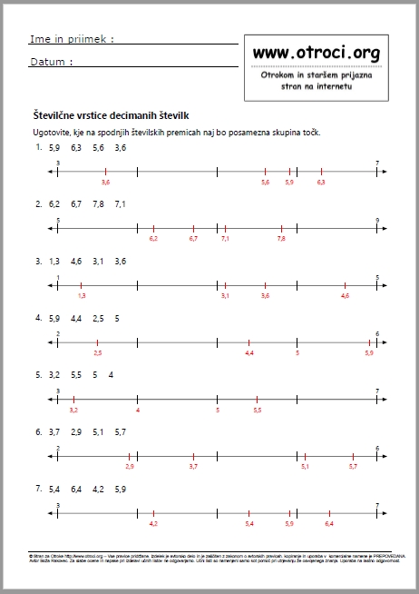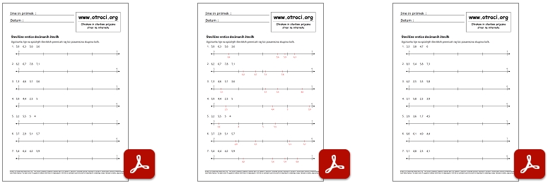 Skupaj 30 učnih listov z rešitvami ! Številčne vrstice decimalnih številk