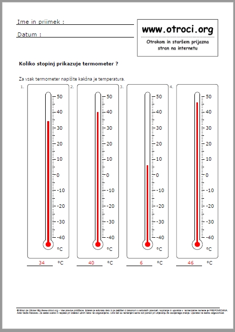 Skupaj 60 učnih listov z rešitvami ! Stopinje celzija